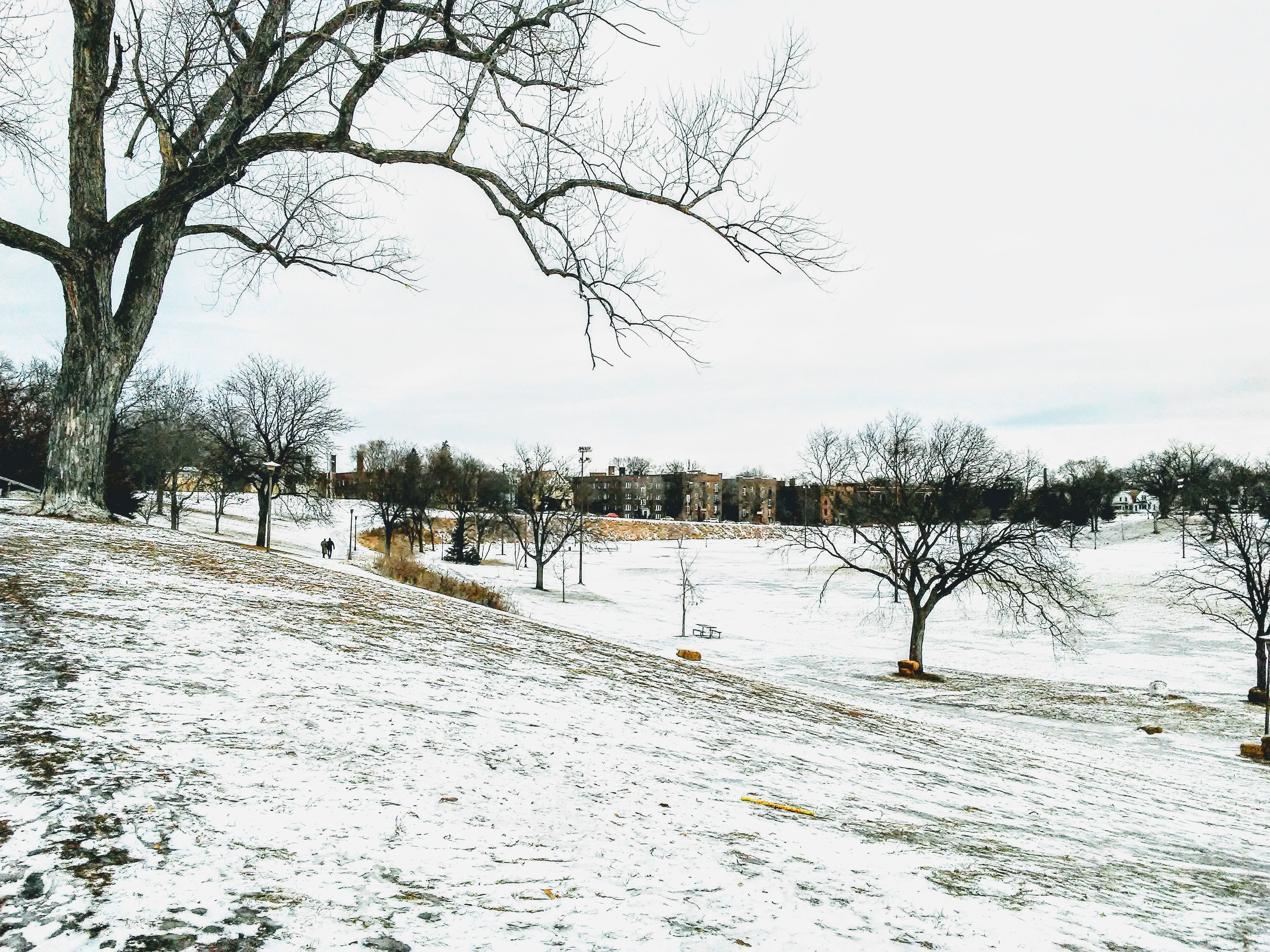 Today I am tethered to a hospital waiting room as a family member has a lengthy surgery. A few blocks from the hospital is a neighborhood park with a small lake, trees, hills, and paved paths. I am without hiking footwear and the paths are icy, but I made it work. It is not a place for a long walk. It is basically a huge earthen bowl with nothing to block the wind on this 5 degree day. (-20C) The houses and apartments that make up the surrounding neighborhood look to be about 100 years old which is antique in Minnesota. The few blocks between the park and the hospital were also an enjoyable part of the walk.