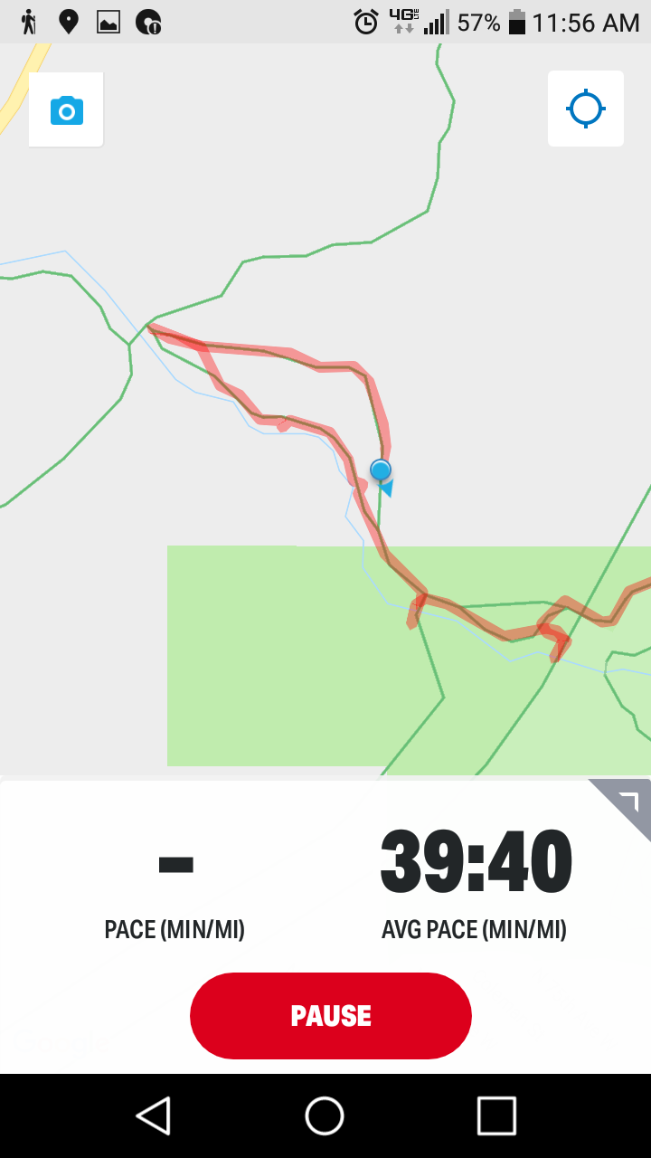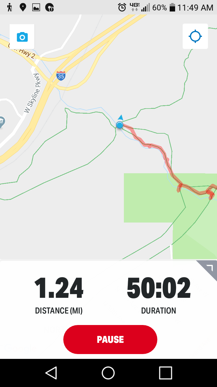 One of the perks of membership in SHTA is a set of updated maps. It would have been good for me to check the section near the zoo before I set off on a hike from there. I used my phone and Google maps. I kept my blue dot on the line that said Superior Hiking Trail, but most of the time it looked like this: