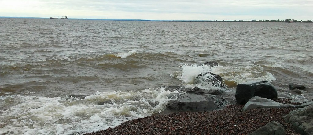 Usually on these long hikes I ponder the great mysteries of life. Not so on this day. My mind was occupied in simply looking for the next trail marker to reassure me that I was on the right path. Wouldn’t it be nice if real life had trail markers? Some reassurance of being on the right path would be helpful! Anyway, on this hike I was fully in the moment and that was exactly what I needed. I was noticing the weather, the temperature, the surroundings, the view, the sky, the sun, the bugs or absence of bugs, the traffic, the people, the trains, the boats, the buildings and the water. I noticed some people in Canal Park that seemed disappointed that it was not warmer. They were surrounded by beauty and seemed unaware of it. It confuses me when I see people dressed in shorts and tank tops complaining that they are cold. Did someone else pick out their clothes for them? Ah, but we should not judge. Everyone is living their life the best way they know how.
