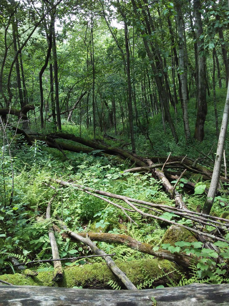 Lots of mossy shady places in the woods between the prairie and the bluff.