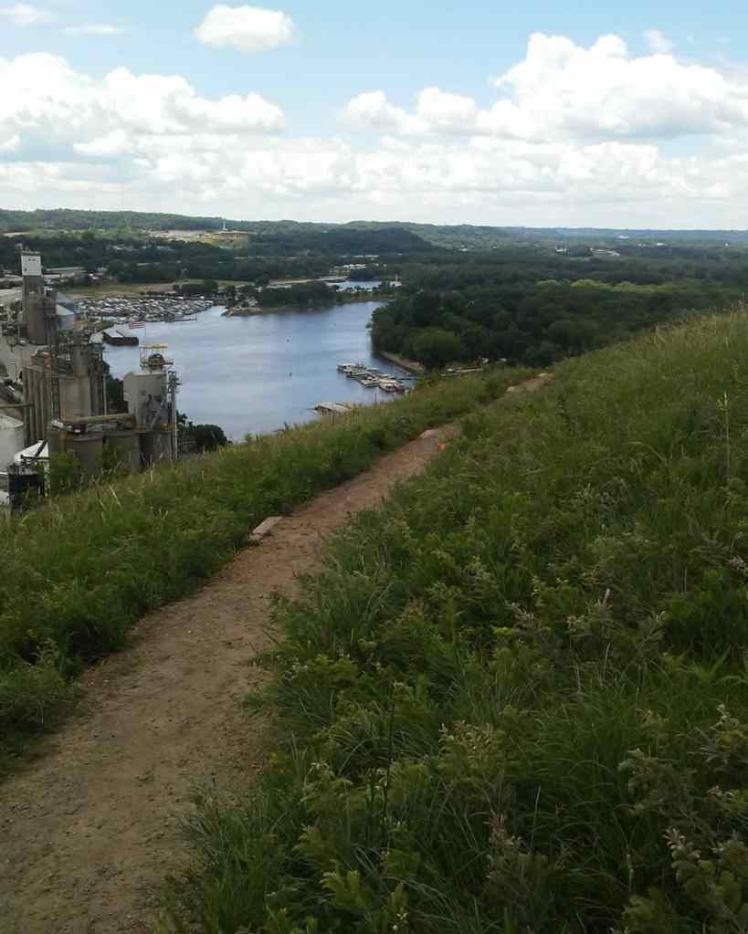 He Mni Can a.k.a. Barn Bluff is a short hike up to a fabulous view of the entire city and surrounding area. The side closest to the river is a trail that is narrow and tricky in spots. The wider flat places are where groups of rock climbers gather. If you have read a lot of my posts, you might know why I considered skipping it. I’m glad I decided to hike here. Yes, I had to walk past people rock climbing and yes it was hard but I did it. I didn’t let fear keep me from doing what I wanted to do. On the way up I took the trail on the other side of the bluff which is just a gradual hill with trees and raspberries. Very pleasant. I could have gone back the same way but I didn’t want to miss out on the shady dirt trail with roots and rocks and the view of the river.