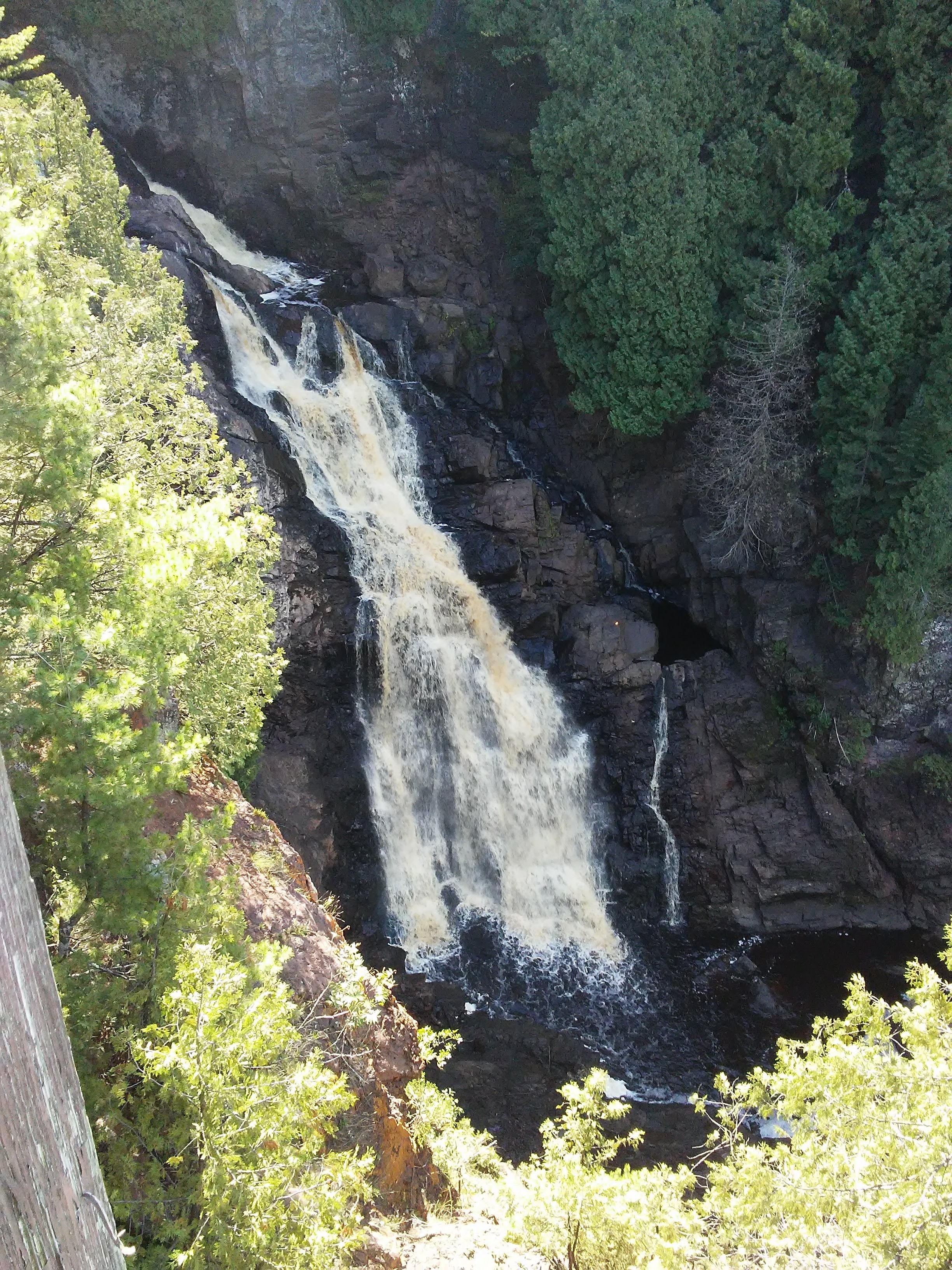 Big Manitou Falls. Tourists everywhere. Signs and railings and fences warn against climbing. There were signs at Gooseberry Falls last summer also. We willingly ignored them. We paid the price.