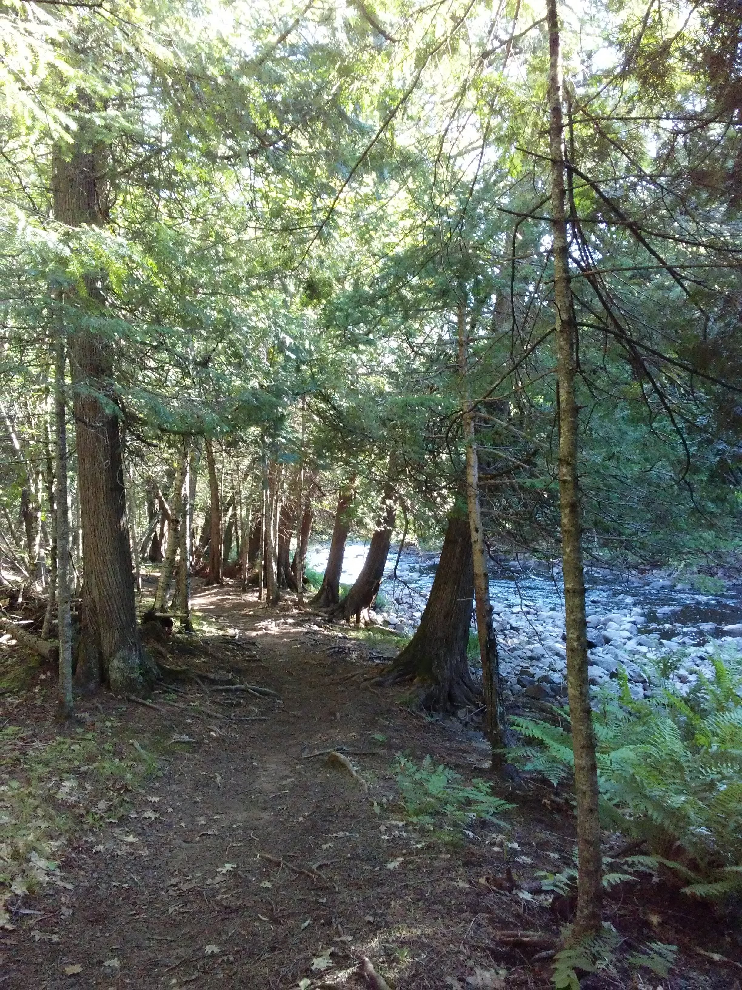 The walk from the campground to the Little Manitou Falls is about 1.5 miles (2.4km). My two hiking companions turned back at the CCC bridge and I spent some time alone which was exactly what I needed that day. I walked on the new wide trail on the way there and the narrow trail on the way back.