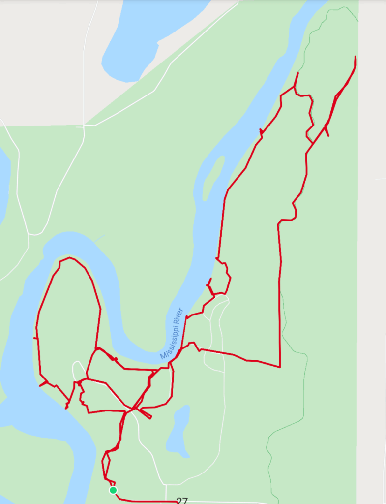 This beautiful view extends upriver a long way. It is called “Chippewa Lookout”. Many of the names and signs here make me wonder how the Ojibwe view this park.