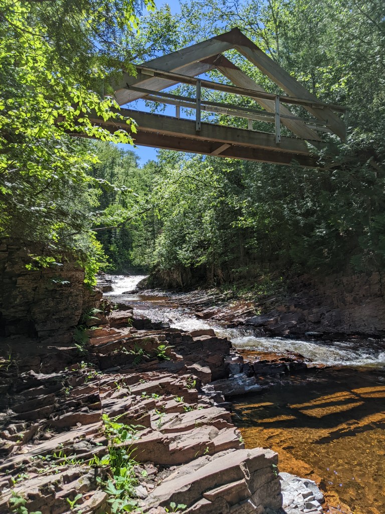 My favorite spot in this section is before Pincushion Mountain. It is under the Devil Track River bridge. On a hot day it is a relief to sit on cool rocks in the shade of the bridge next to fast flowing water. I drew a picture there, but it wasn’t a keeper. That’s ok. Just being there was enough.