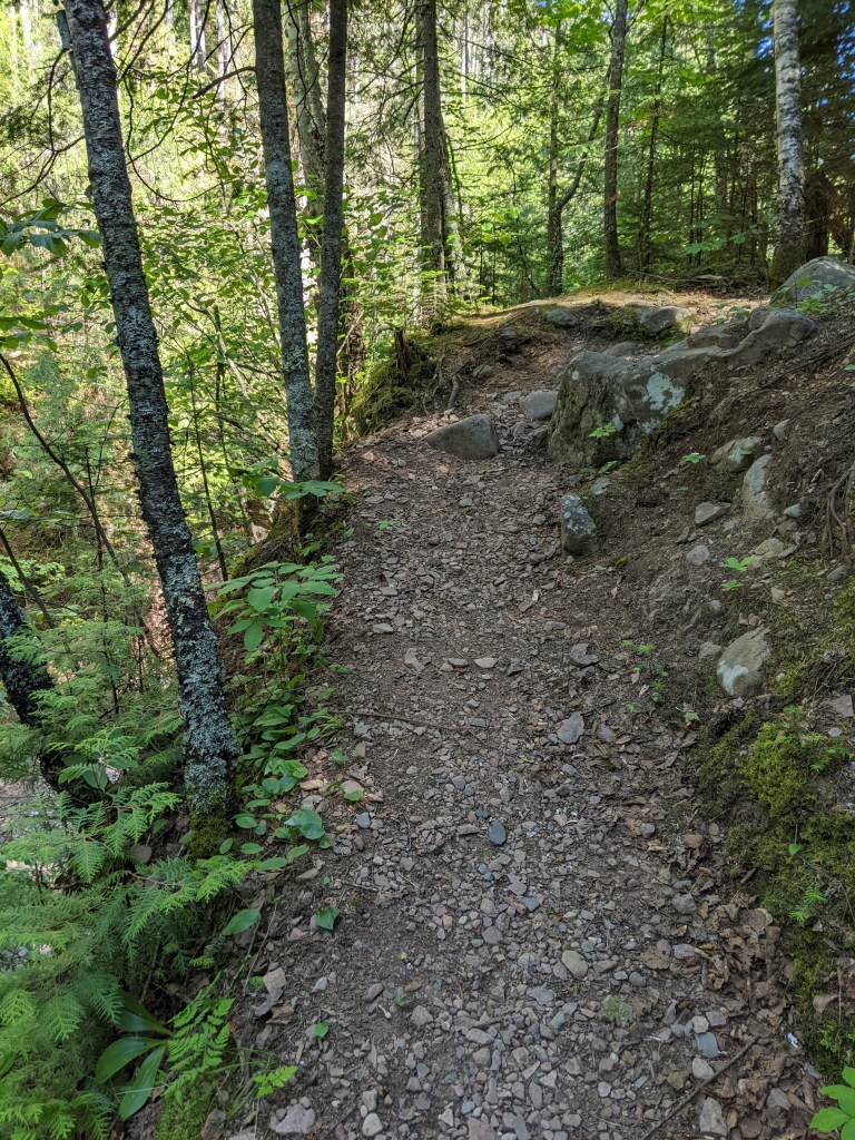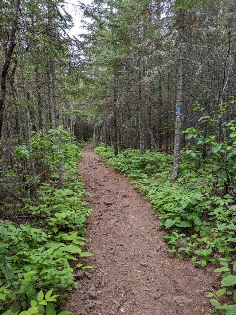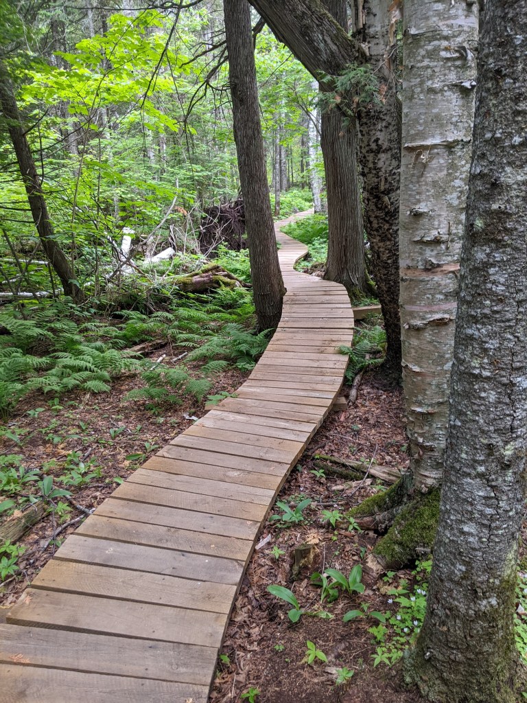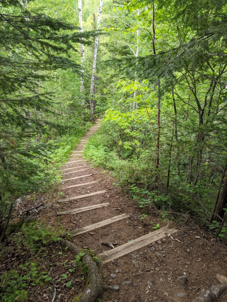 Right after Devil Track River be ready for steps. About 150 of them. Once that is done the rest is fairly level. The last couple miles before Pincushion Mountain Trailhead have boardwalks through a marshy area. So many boardwalks! It was beautiful and a relief to have a flat even walking surface after so much scrambling and slow careful foot placement. I kept thinking of how many hours of labor it must have taken to create the wooden walkways. This trail is maintained by volunteers. I am so grateful for them!