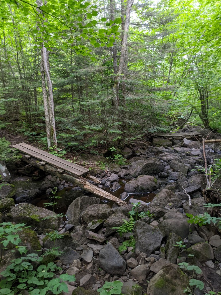 We camped at North Carlson Pond. There was one place near South Carlson Pond camp where the trail was overgrown and we missed where it crossed the creek. We used a combination of our Garmin device, compass, and map to get back on track. It is good to have an understanding of how to find your way without the aid of electronics! It is also good to practice with your devices before you need to rely on them! It sure felt good to find the trail again.