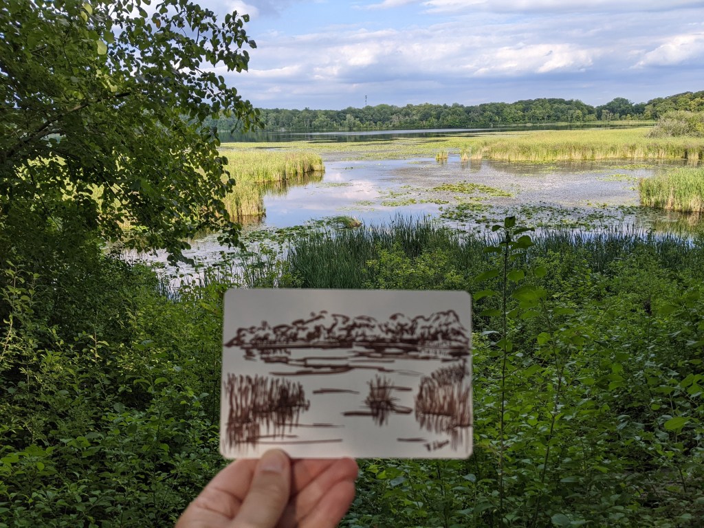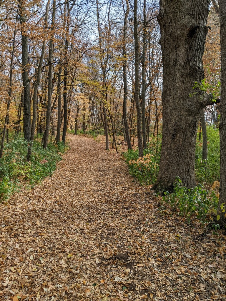 I first wrote about this park in September of 2020. Over the past couple years I have returned multiple times to explore it further. October 19, 2022 was my most recent visit. It is a gem of Southern Minnesota between the towns of Victoria, Waconia, and St. Bonifacius. Driving 45 minutes southwest from my studio in Minneapolis will get me there (if traffic is running smoothly). I like to stop at the Dairy Queen in Victoria as I turn right off Highway 5. The entrance to Lowry Nature Center is on the right when driving north on Victoria Drive. The main building has a large parking lot and flush toilets. A pit toilet is also available. There are rolling hills, lakes, and a mix of prairie and deciduous forests.