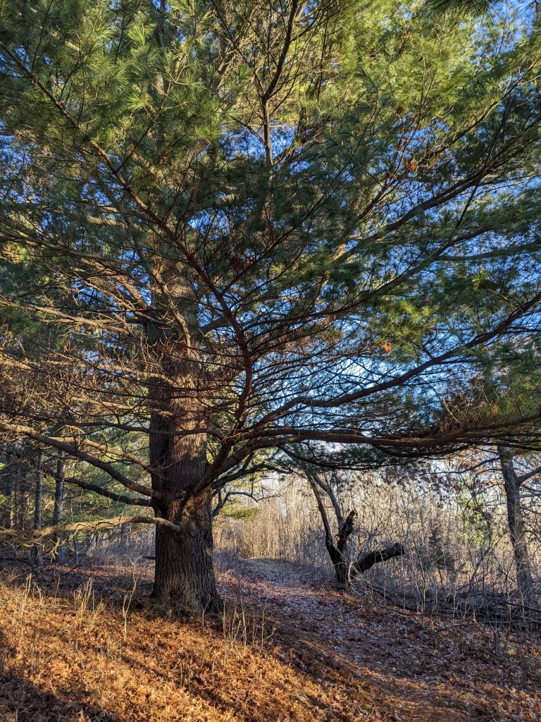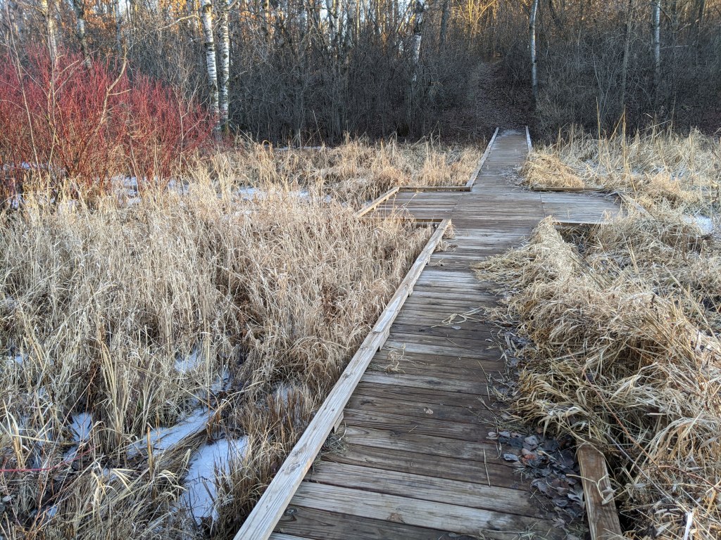 While it was strange to experience weather that felt more like early November than late December, I still very much enjoyed this walk. I encountered a few others out enjoying the day as well. Very different from the solitude of my February 2020 visit. After crossing the wetland boardwalk I went up the hill and followed that trail about a half mile. It went past an industrial area with large white cylindrical tanks and wire fencing. The trail still seemed established so I continued. It went back into the woods for a bit and then opened onto a train track. I was not comfortable walking along the train track so I went back. After checking the map again, I do not believe that was part of the nature preserve. Probably best to turn around when you see the big white tanks.