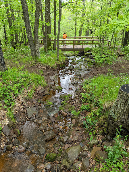 It has been awhile since I explored the other trails. I remember tall grass and ticks on the upper skunk cabbage trail. It was early in summer. I hear the wildflowers are beautiful once they are in bloom. There are also trails on the other side of the river, but there are no trail crossings over the river. You would have to park on the other side or use watercraft to access those trails. There is a parking lot for bouldering near the town of Sandstone. Also in Sandstone is Robinson Park. Another great place to hike that used to be a quarry. So many hikes!