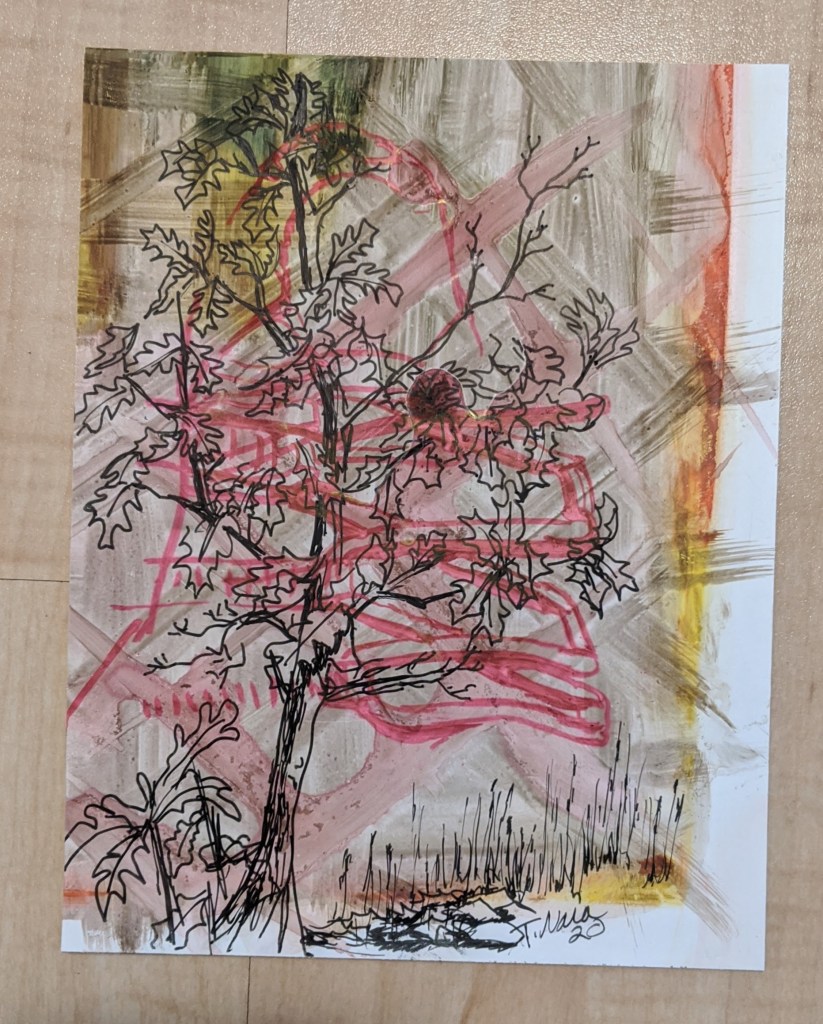 An idea for future artwork that appeals to me is “Neurographic” art (look it up, if you like). Another is to fill a paper or canvas with handwriting practice or meditative drawing and then add color in an abstract meditative way. I do not have any photos yet of these ideas. I also feel a bit of a nudge back to representational drawing. My sketches I have made lately are not photographed. Hibernation mode means I’m removing that expectation. At least for now.