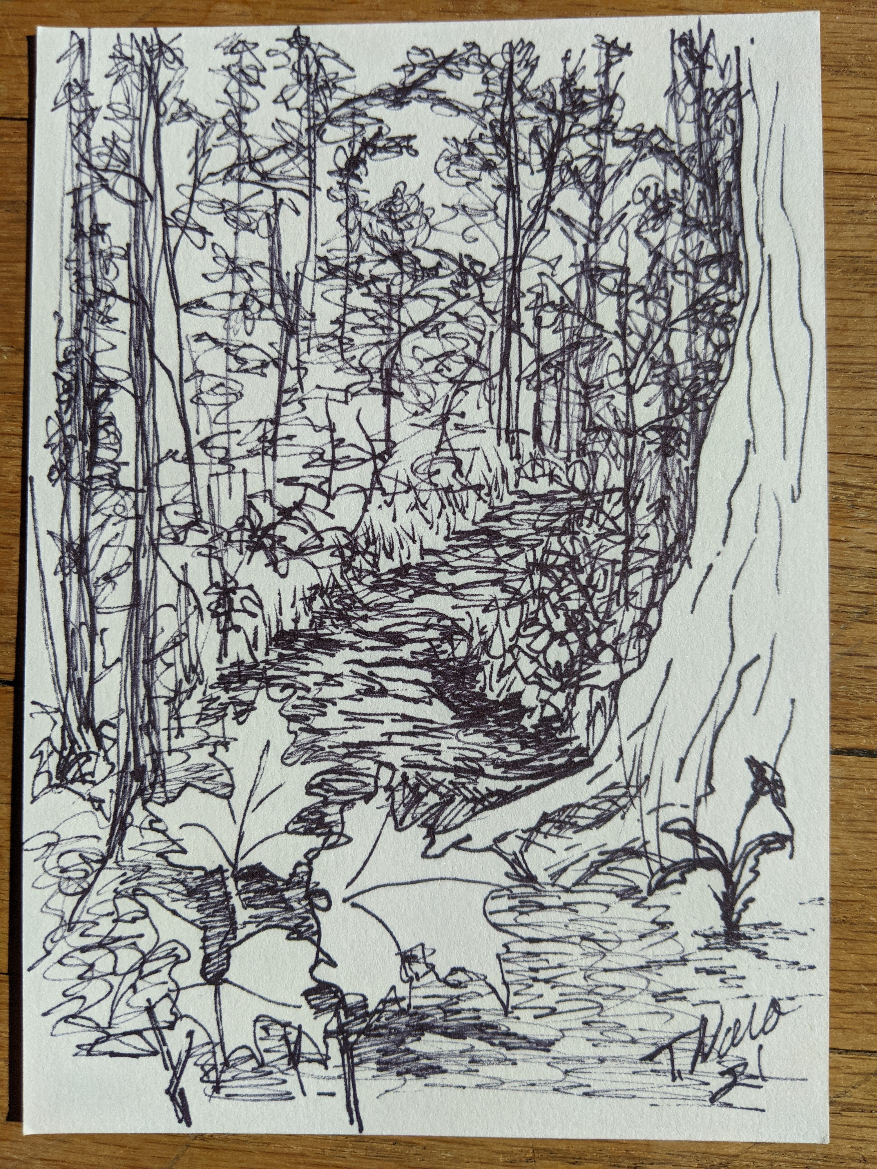 Getting back into long walks was another part of February for me. Walking is a valuable tool for metabolizing stress and getting myself ready for creating art. Below is a sketch I made at Como Park in St. Paul. I’m learning that no matter how many curve balls life throws at you, maintaining some form of creative practice is a beneficial thing to keep going.