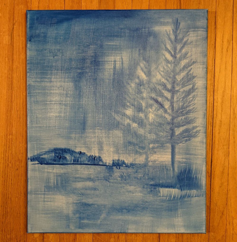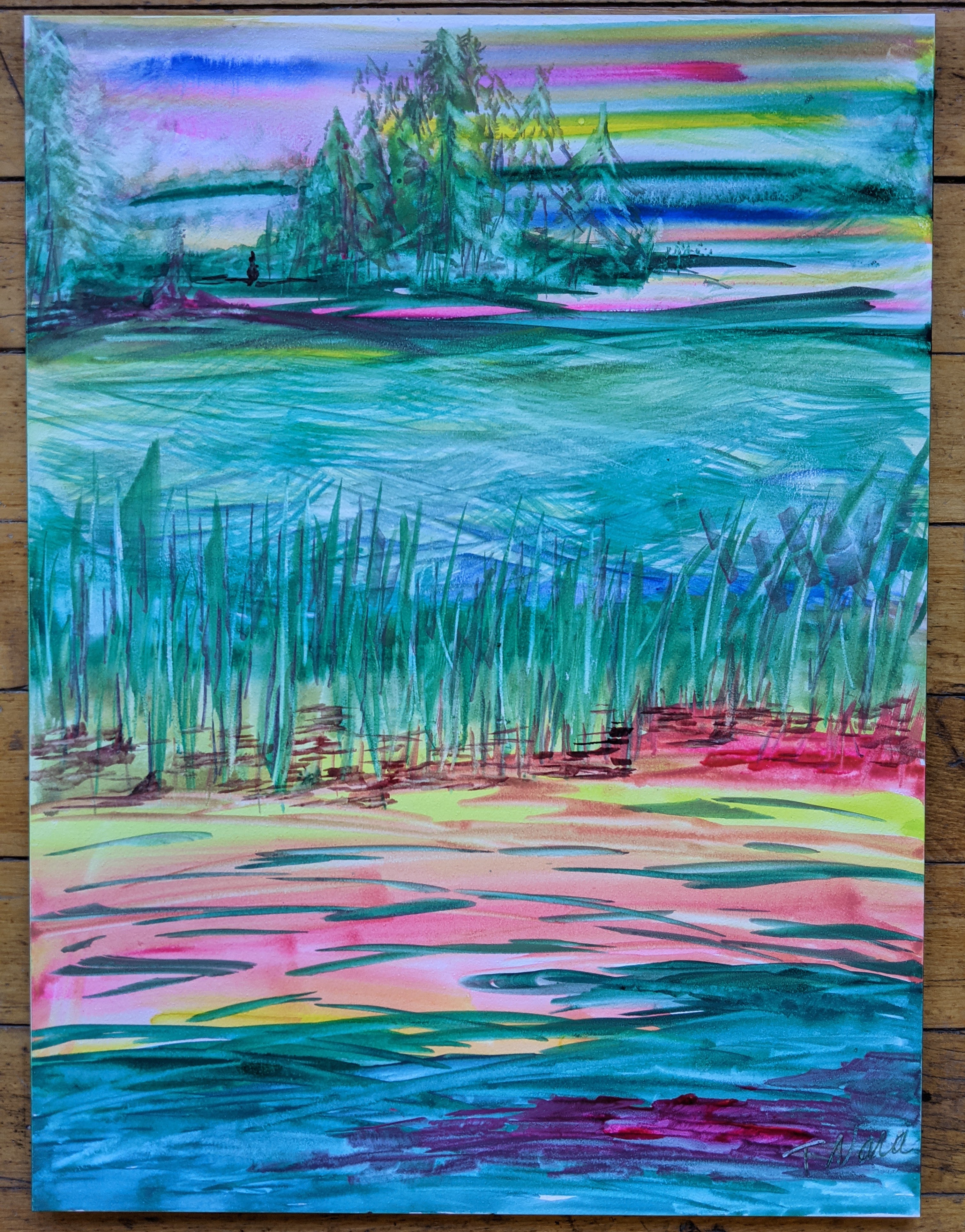 I said yes to a show in Park Rapids. There is a community of artists there that impress me and I appreciate getting to know them better. This was also a chance for me to take stock of where I am and choose pieces for an additional display. I’m pleased with the results even though I accidentally destroyed the all blue landscape painting. I was framing it late at night and the screwdriver slipped. A big hole right through the canvas. Not repairable. Bad words were said. Eventually I got over it.