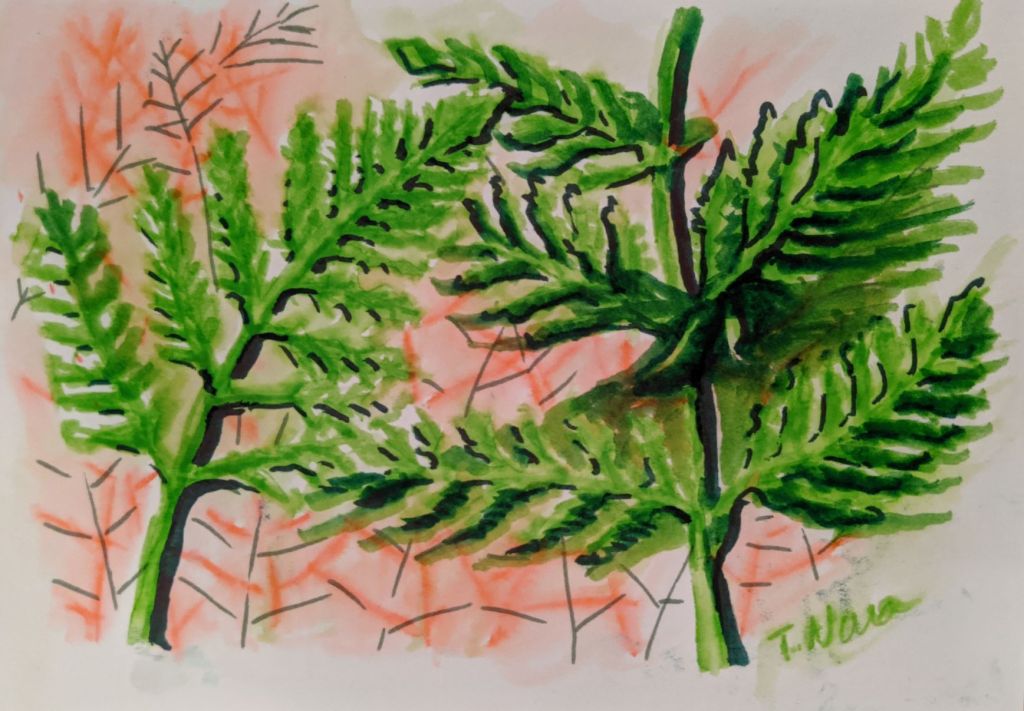 I’m interested in edible plants. Having that focus is great because I don’t have to wonder what I will draw or paint next. I create abstract backgrounds, I create small “first drafts”, and then I choose a plant and a background and start to draw. I like how they are turning out.