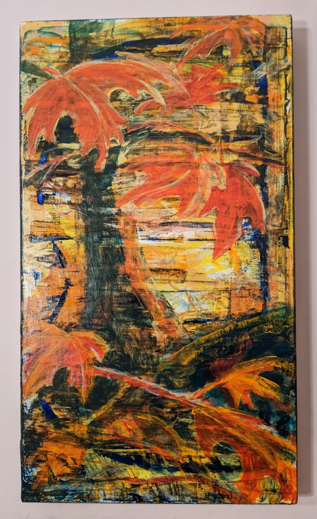 Instead, here are two photos of paintings that sold recently. I notice both are mostly orange. Interesting. I try not to let sales dictate my creative direction, but it still feels good when someone likes what I create enough to want to take it home. It motivates me to keep going. Gratitude to the new owners! Thank you!